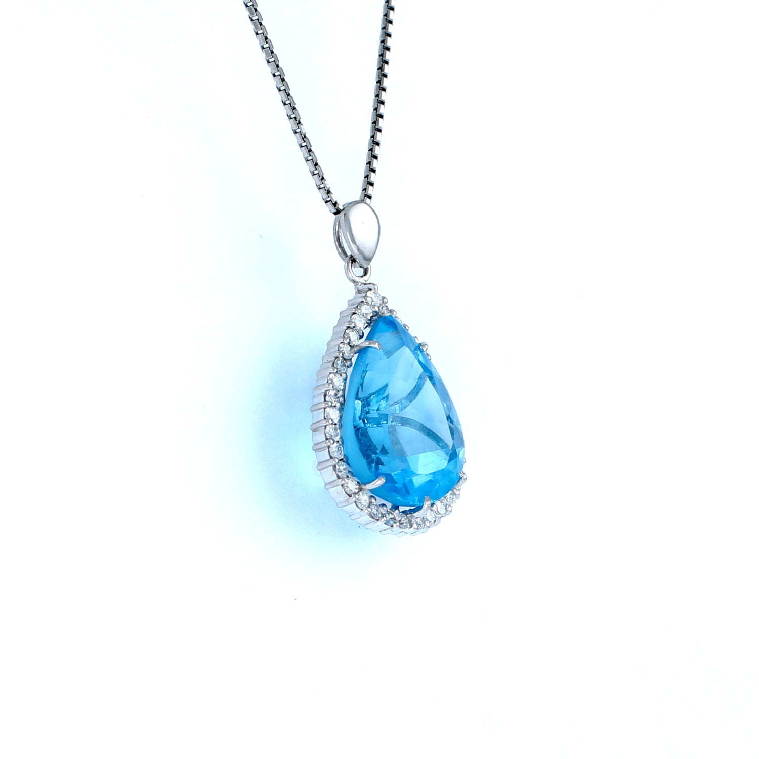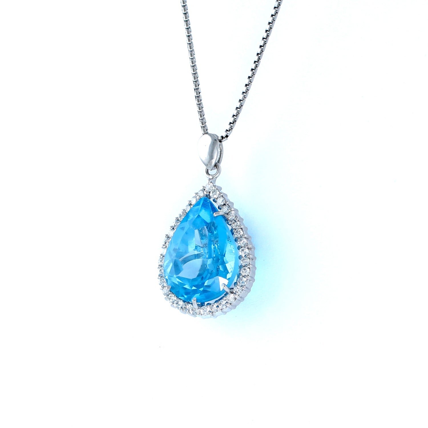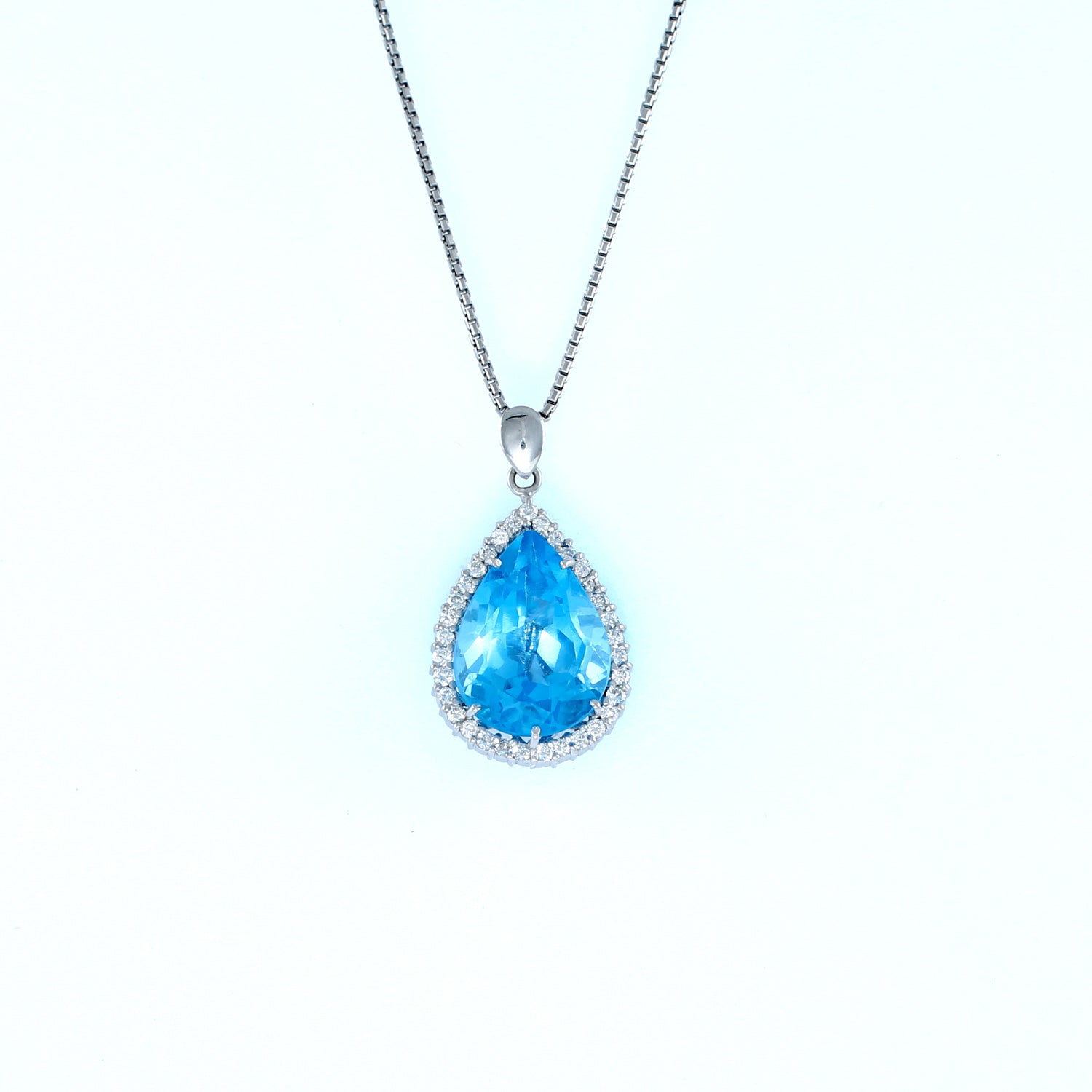 18KT WHITE GOLD PENDANT STUDDED WITH NATURAL BLUE TOPAZ AND DIAMOND