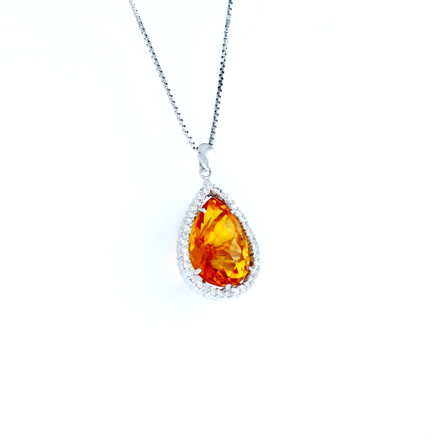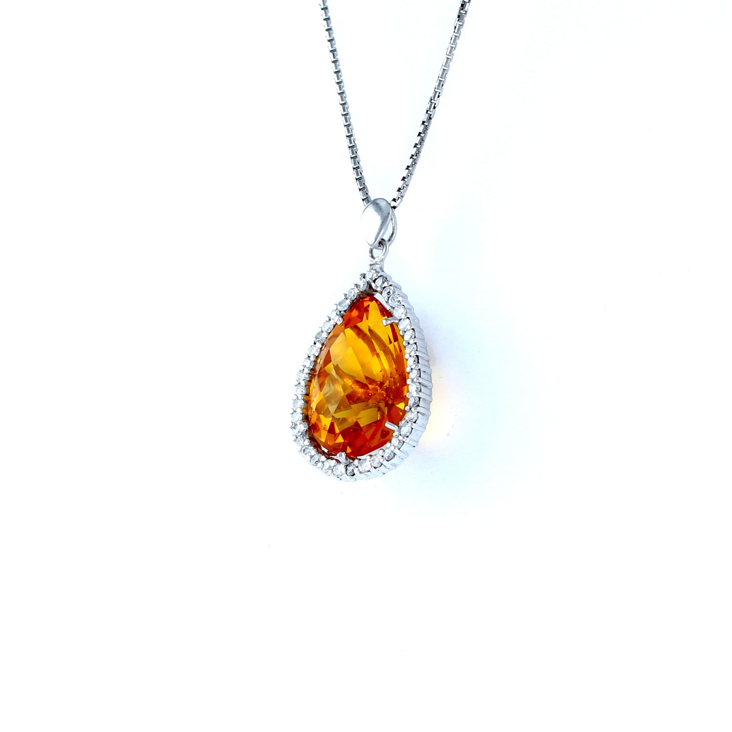 18KT WHITE GOLD PENDANT STUDDED WITH NATURAL CITRINE AND DIAMOND