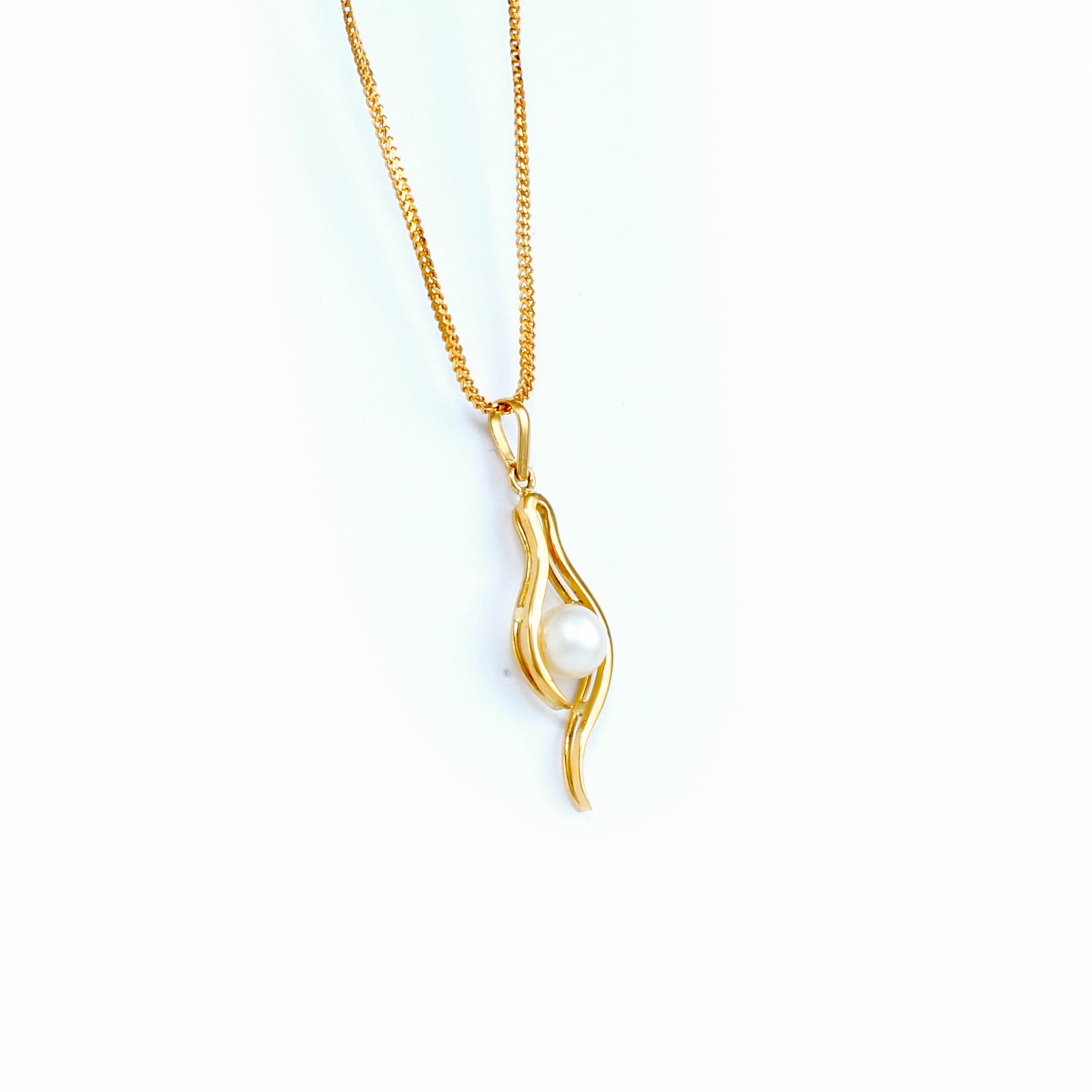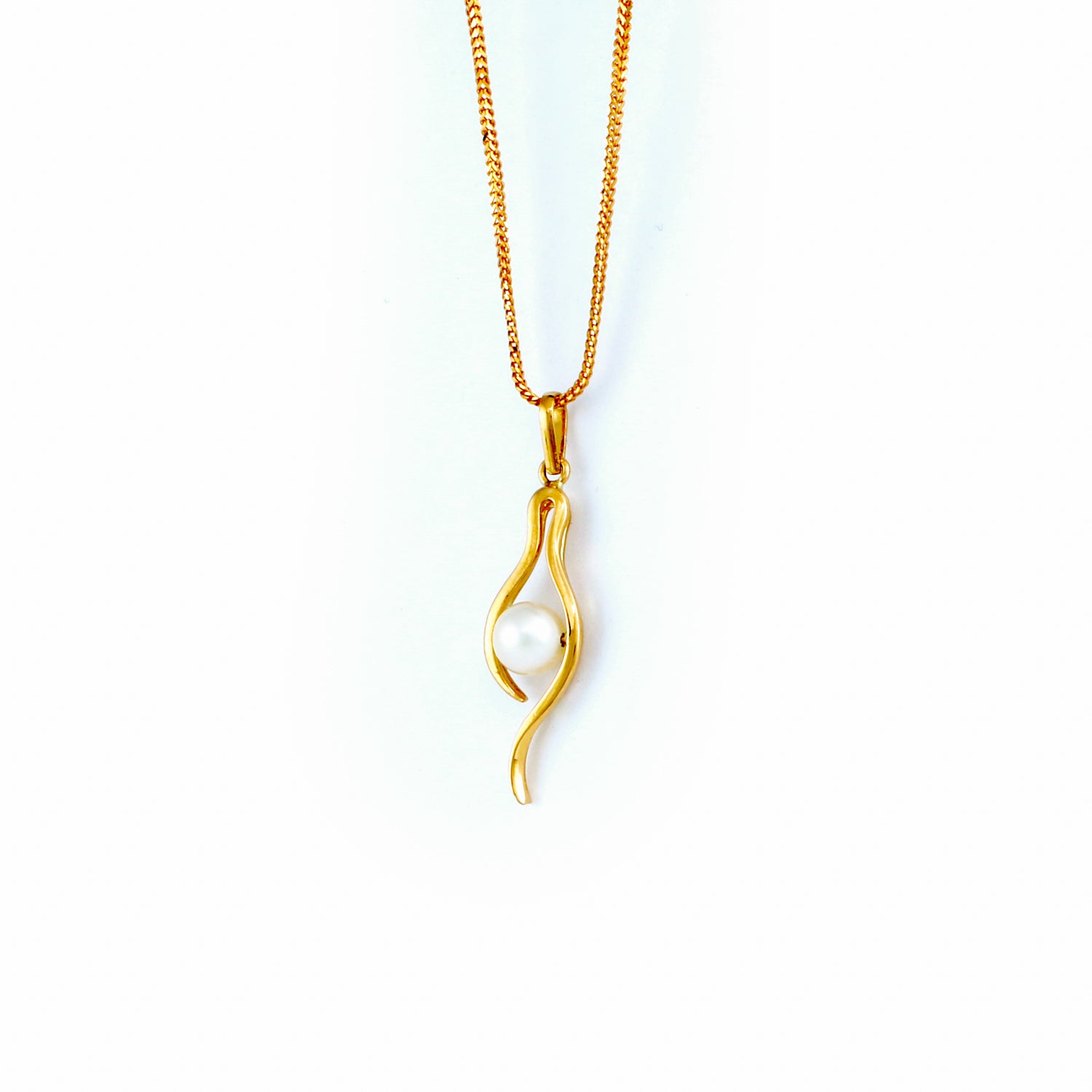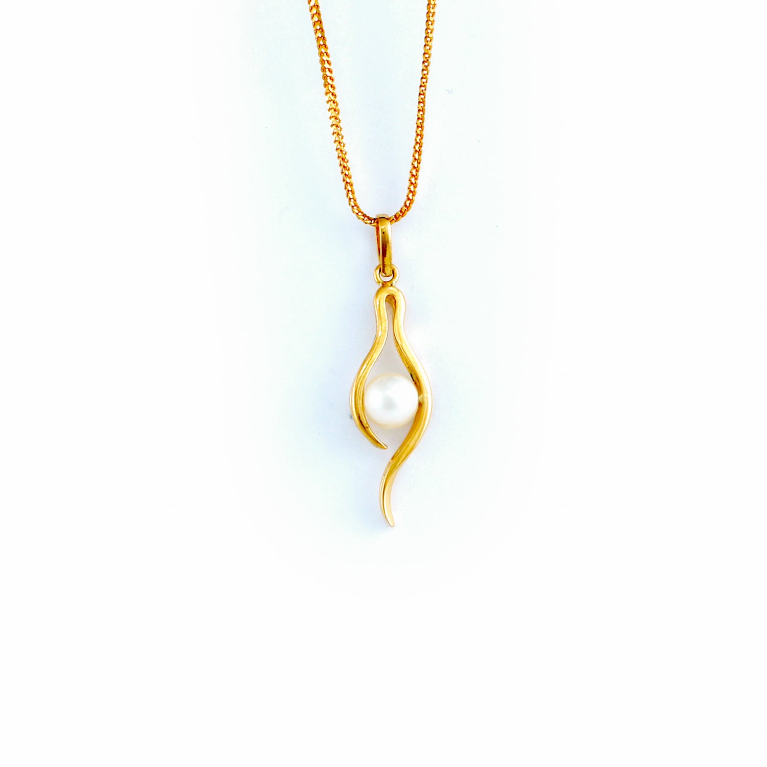 PEARL PENDANT HANDCRAFTED IN 22K SOVEREIGN GOLD SET WITH GENUINE VANILLA PEARLS.