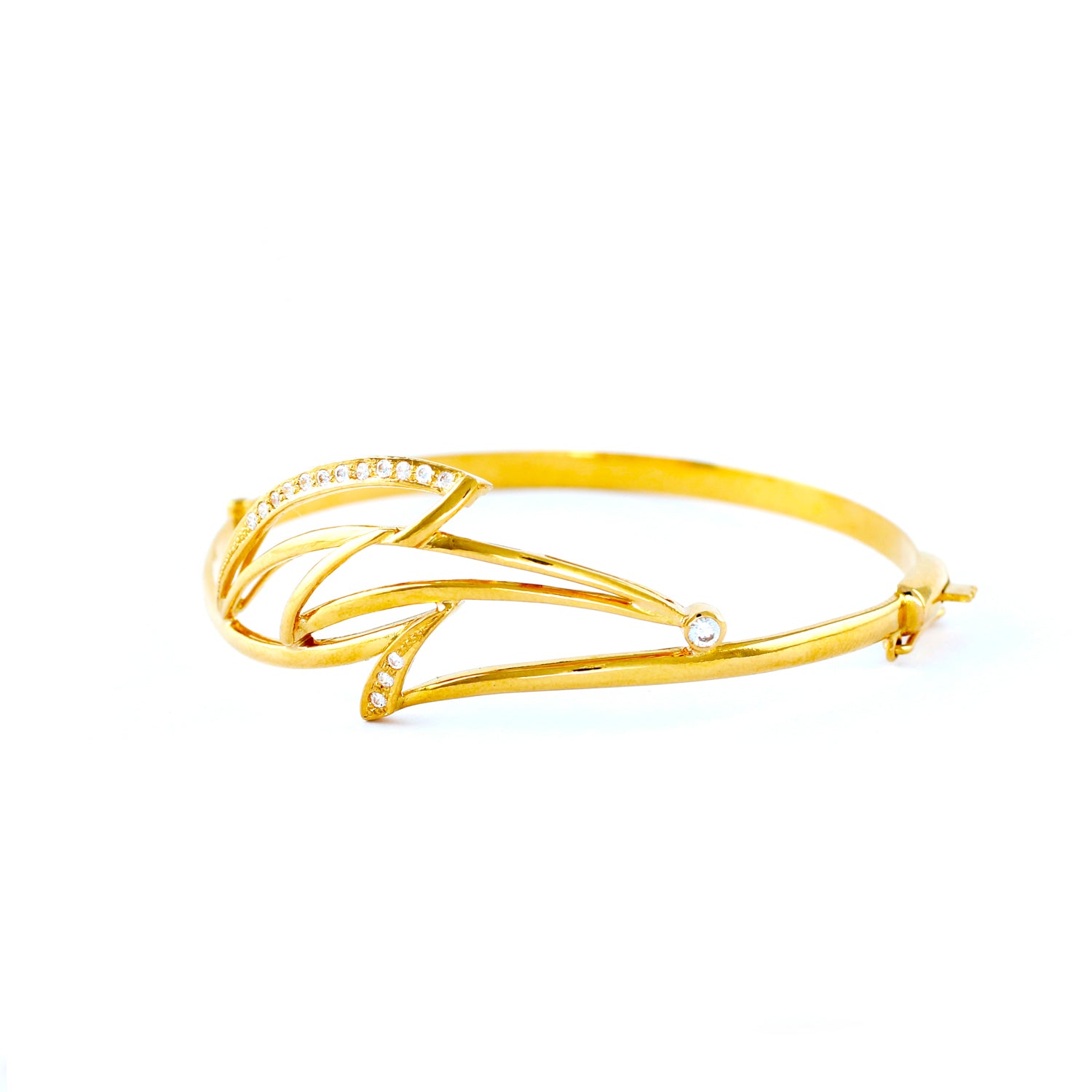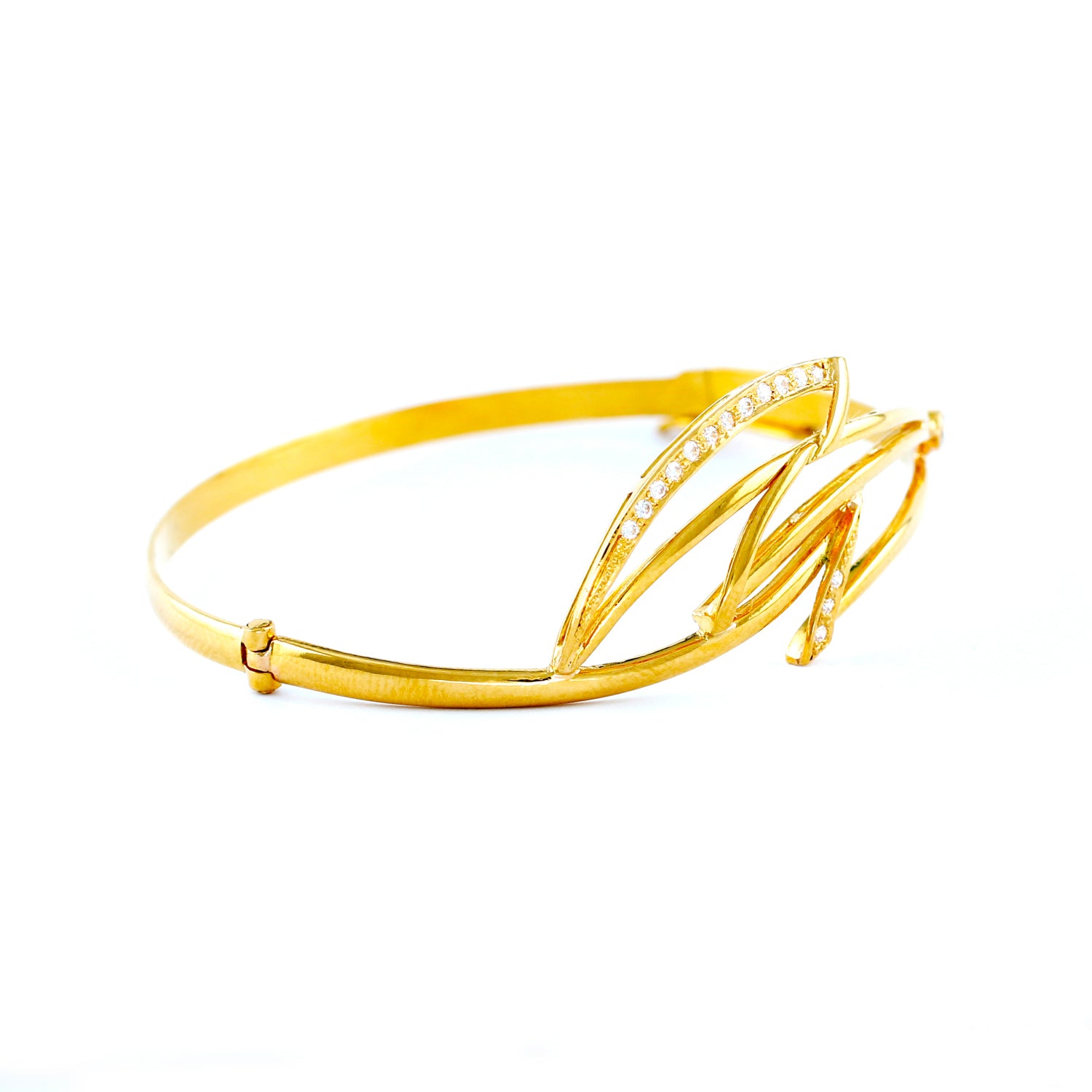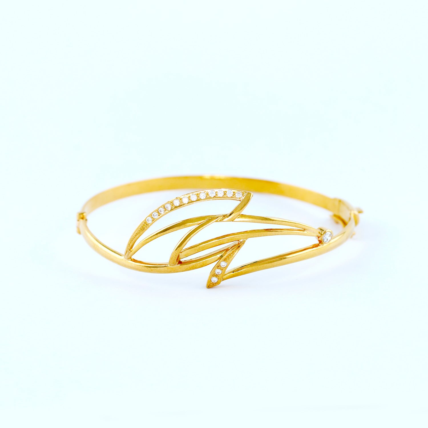 22KT YELLOW GOLD HAND CRAFTED LOCK BANGLE STUDDED WITH HIGH QUALITY SWAROVSKI ZIRCONIA