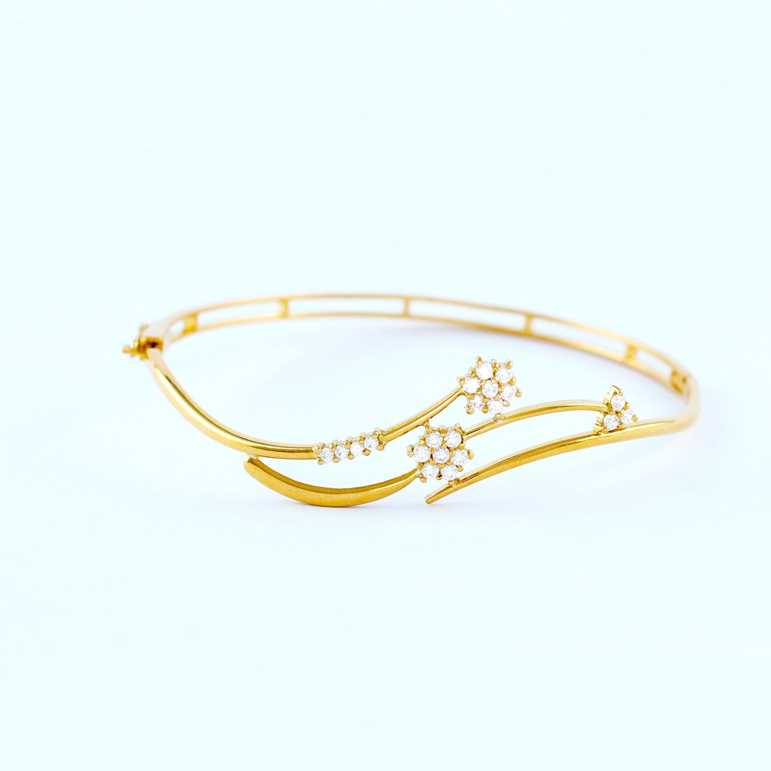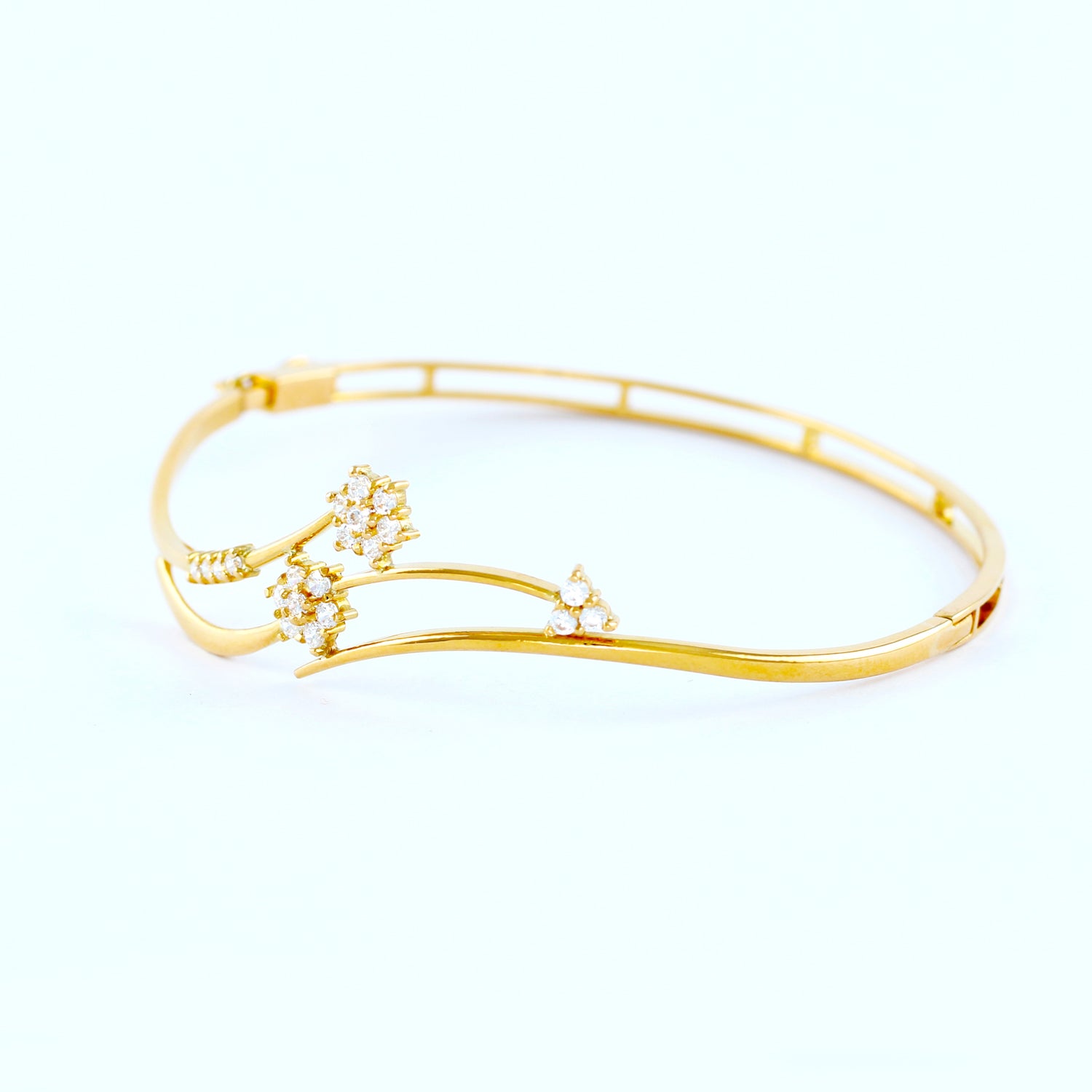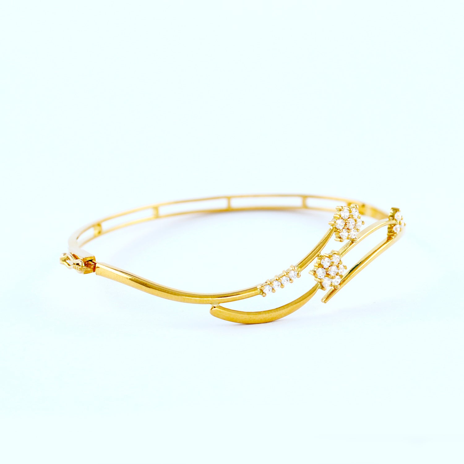 22KT YELLOW GOLD HAND CRAFTED LOCK BANGLE STUDDED WITH HIGH QUALITY SWAROVSKI ZIRCONIA