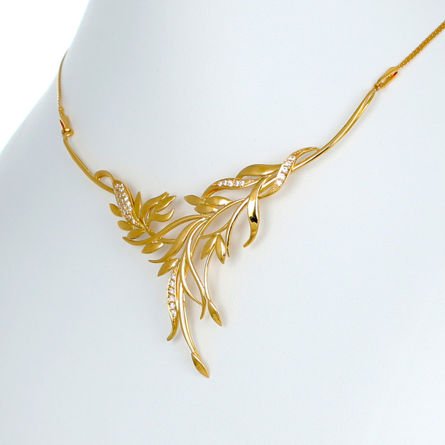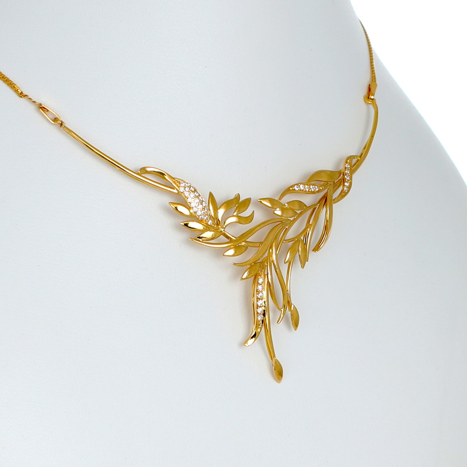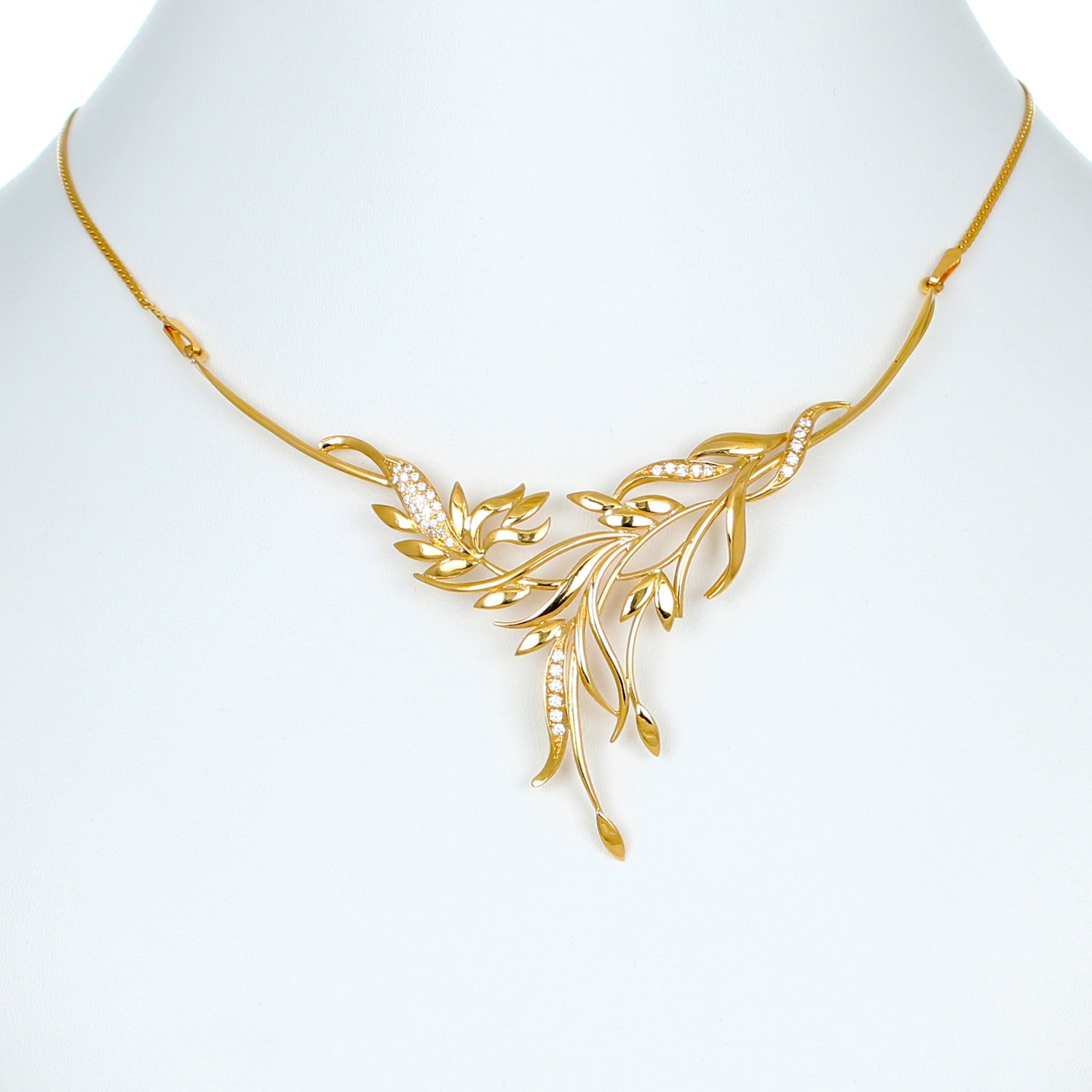 22KT YELLOW GOLD HAND CRAFTED NECKLACE STUDDED WITH BEST QUALITY SWAROVSKI ZIRCONIA STONES